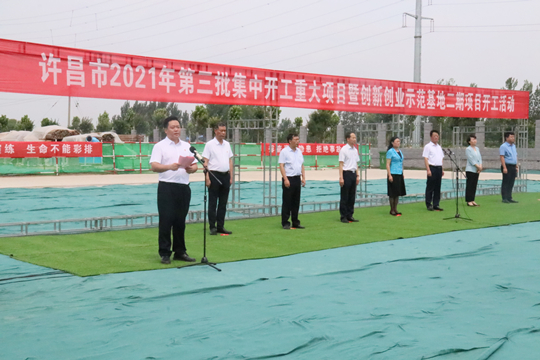 7月10日上午,河南省许昌市2021年第三批集中开工重大项目暨创新创业示范基地二期项目开工仪式顺利举行。许昌市委常委、纪委书记、监委主任方婷,魏都区委书记李朝锋,区人大常委会主任申健民,区政协主席杜晓辉,区委常委、区委办主任程中山,区委常委、区纪委书记、区监委主任徐光,魏都产业集聚区管委会主任楚文选,华体会官方版网站登录入口河南分公司总经理黄辰,魏都区政府相关部门、投资公司、产业集聚区、霸陵办事处等单位负责人参加活动。区委常委、常务副区长张挪威主持仪式。